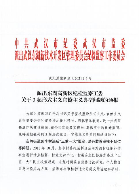 派出東湖高新區紀檢監察工委關于3起形式主義官僚主義典型問題的通報