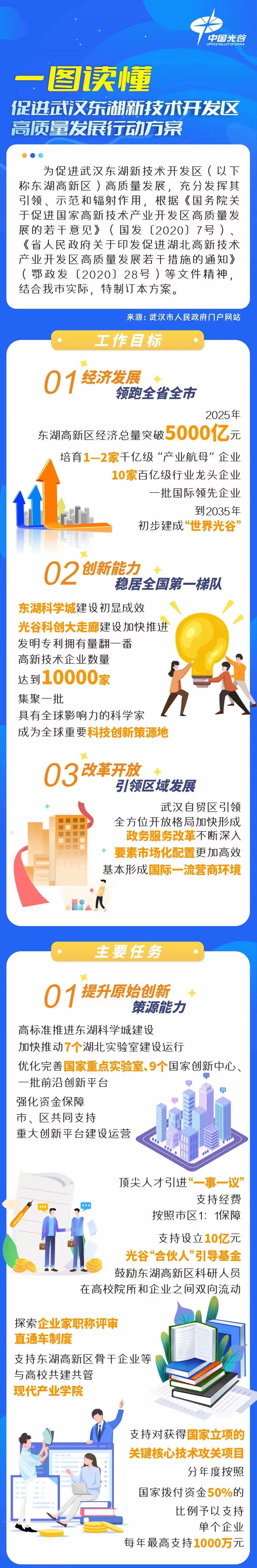 武漢印發行動方案:推動光谷高質量發展,2025年GDP突破5000億,2035年初步建成“世界光谷”